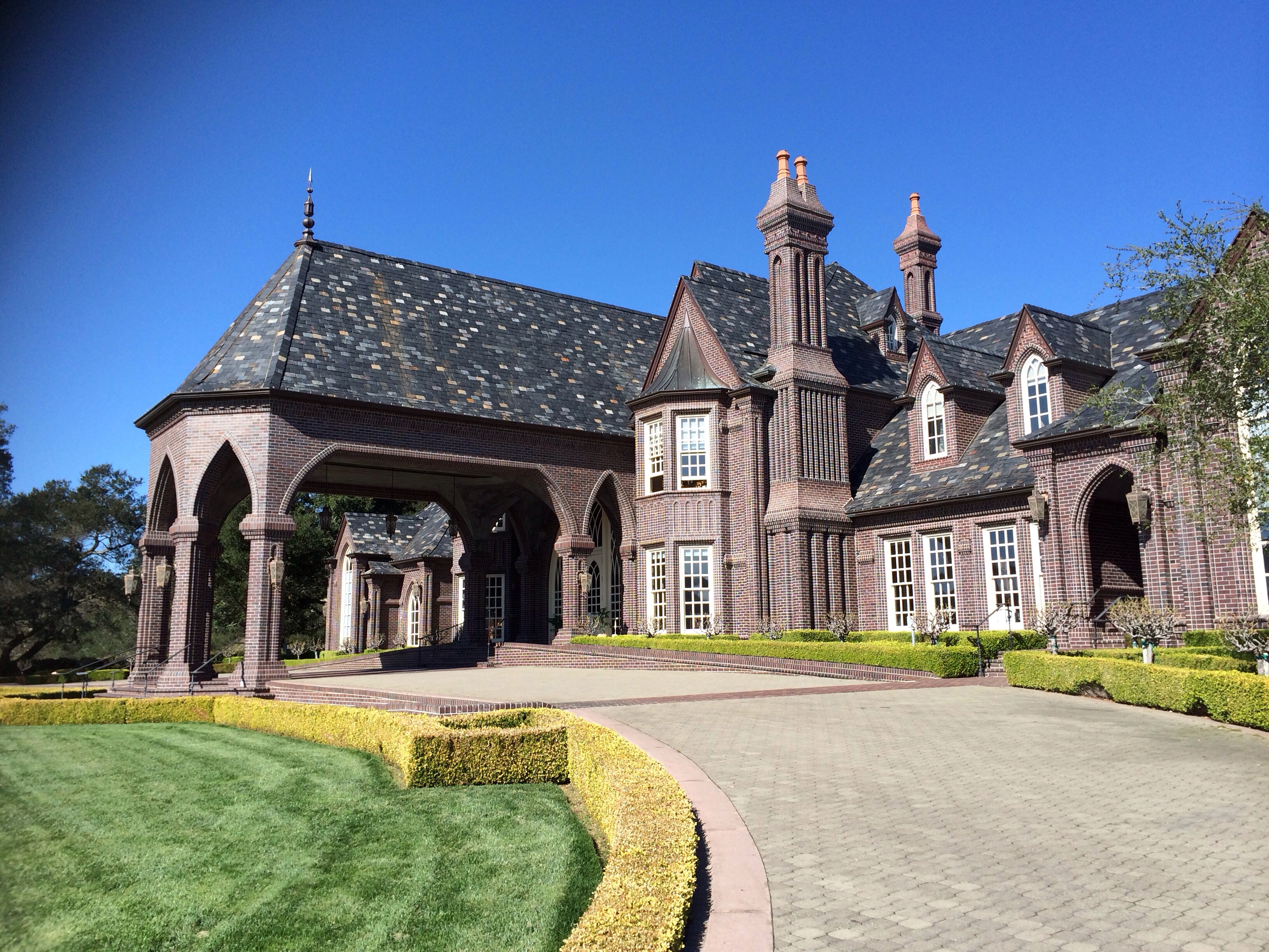 On our honeymoon a year ago, we had the luxury of a limo tour through Sonoma. Nothing beats having someone drive you from vineyard to vineyard in a fully stocked stretch limo – one of the many highlights of our honeymoon for sure. And one of our earlier stops that day was Ledson Family Winery, a beautiful brick castle of a place nestled in amongst the hills with grapevines growing in vineyards all around it. We stopped for a picture on their long driveway before we were dropped in front of their grand double front doors.