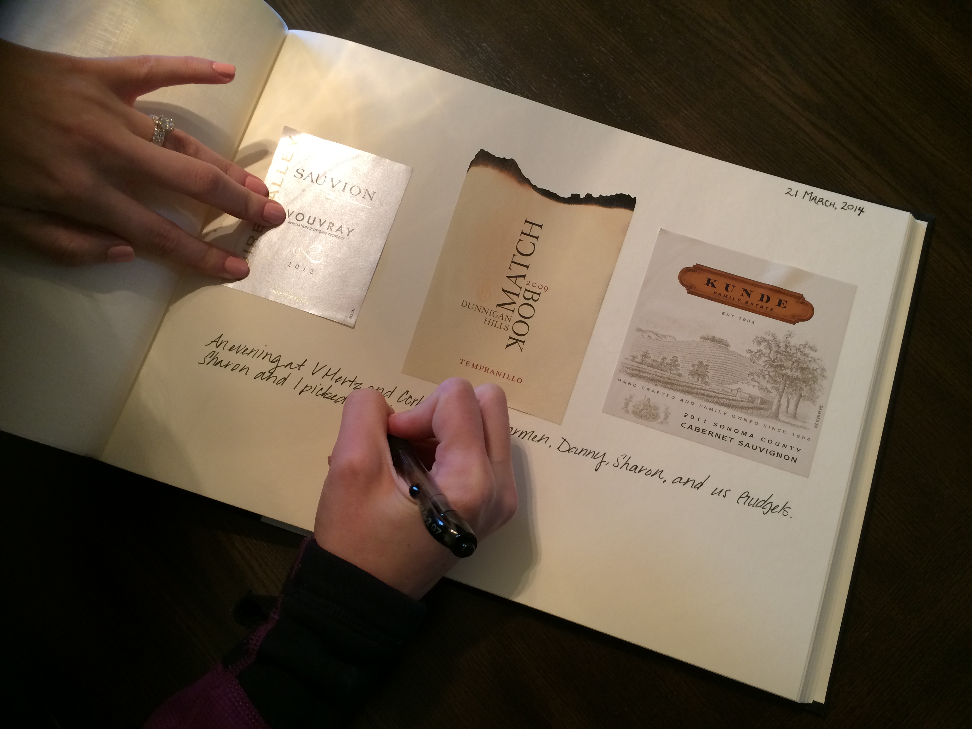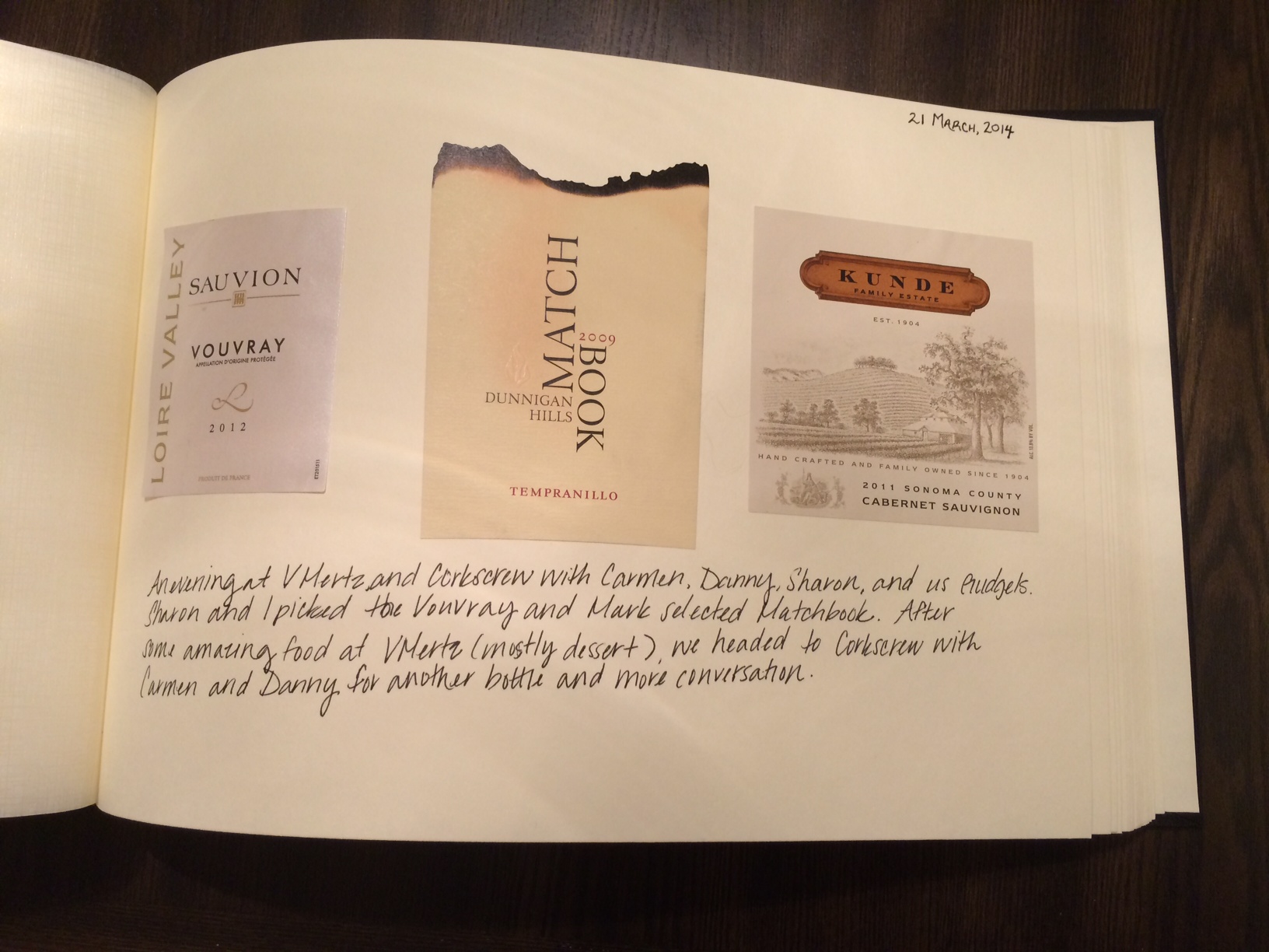 Our wine journal started as we suppose that many do, documenting the taste of the wine and whether or not we liked it. As time progressed however, we have found that we write less and less about the wine itself and more of the experience we had either with each other, or sharing the wine with friends or family. After all, wine isn’t a beverage, it’s an experience. Some families have photo albums to document memories; we use our photo albums to document our wines and the memories that go with them. In a time where most of our photographs are taken and stored on our iPhones, our wine label collection is both eclectic and tangible, and reminds us and others of so many wonderful times we’ve shared. Have an idea about how to improve even further upon our wine diary? Please comment! We’d love to hear from you.